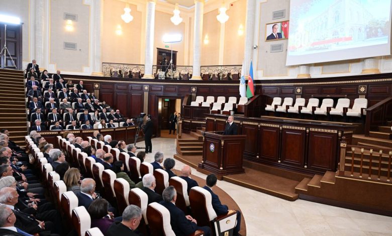 Prezident İlham Əliyev çıxışında qeyd edib ki, Azərbaycan Milli Elmlər Akademiyası ötən 80 il ərzində ölkənin elmi potensialının formalaşmasında və inkişafında aparıcı rol oynayıb. Dövlət başçısı vurğulayıb ki, müstəqillik illərində elmin maddi-texniki bazasının gücləndirilməsi, elmi müəssisələrin müasirləşdirilməsi, yeni institutların yaradılması və elmi qrant mexanizmlərinin tətbiqi istiqamətində ardıcıl tədbirlər həyata keçirilib. Azərbaycan alimlərinin fəaliyyətini dəstəkləmək məqsədilə Elm Fondunun yaradılması və “Elm haqqında” Qanunun qəbul olunması bu siyasətin mühüm nəticələrindəndir.