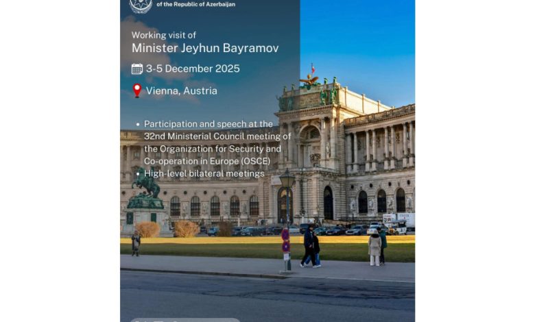 Dekabrın 3-də Azərbaycanın xarici işlər naziri Ceyhun Bayramov Avstriyanın paytaxtı Vyana şəhərinə işgüzar səfərə yola düşüb.