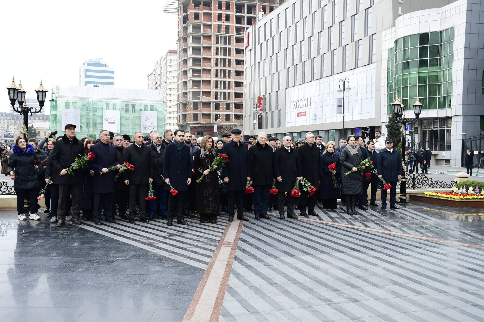 Abidənin önünə əklil və gül dəstələri qoyulub, soyqırımı qurbanlarının əziz xatirəsi ehtiramla yad olunub.